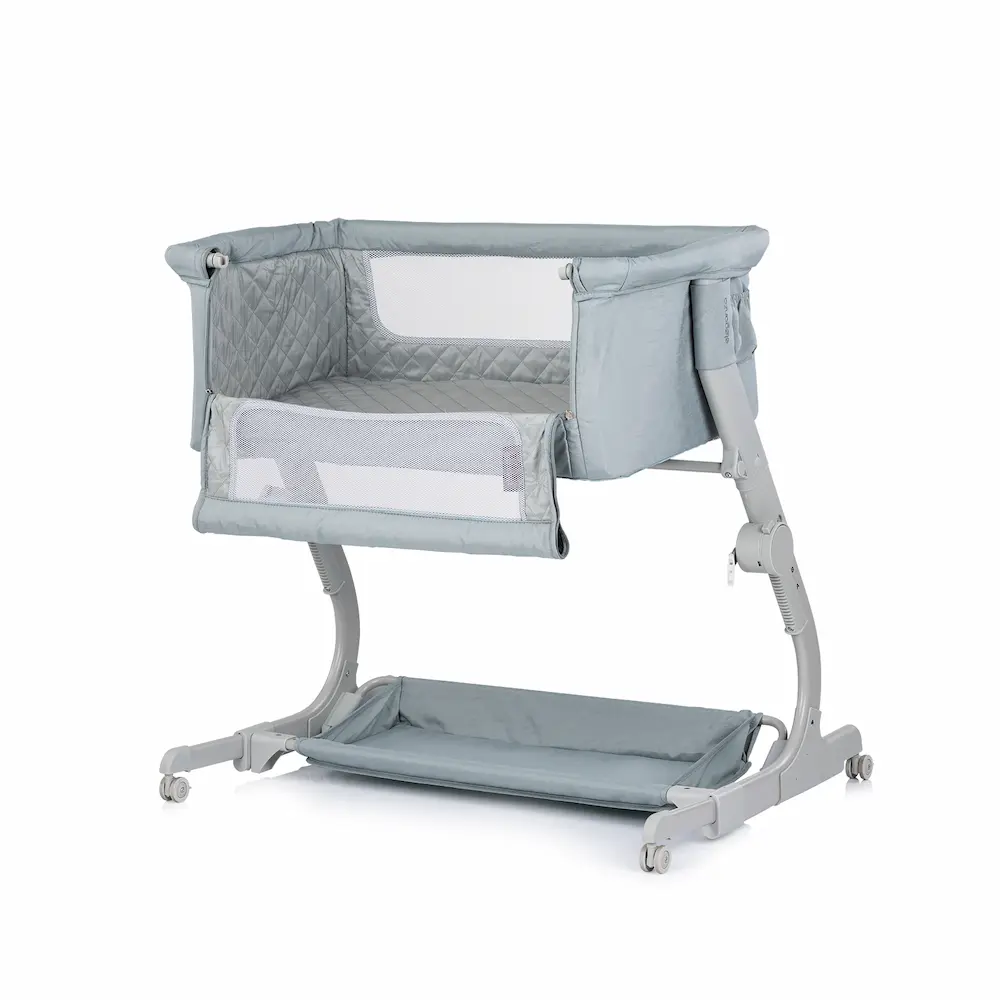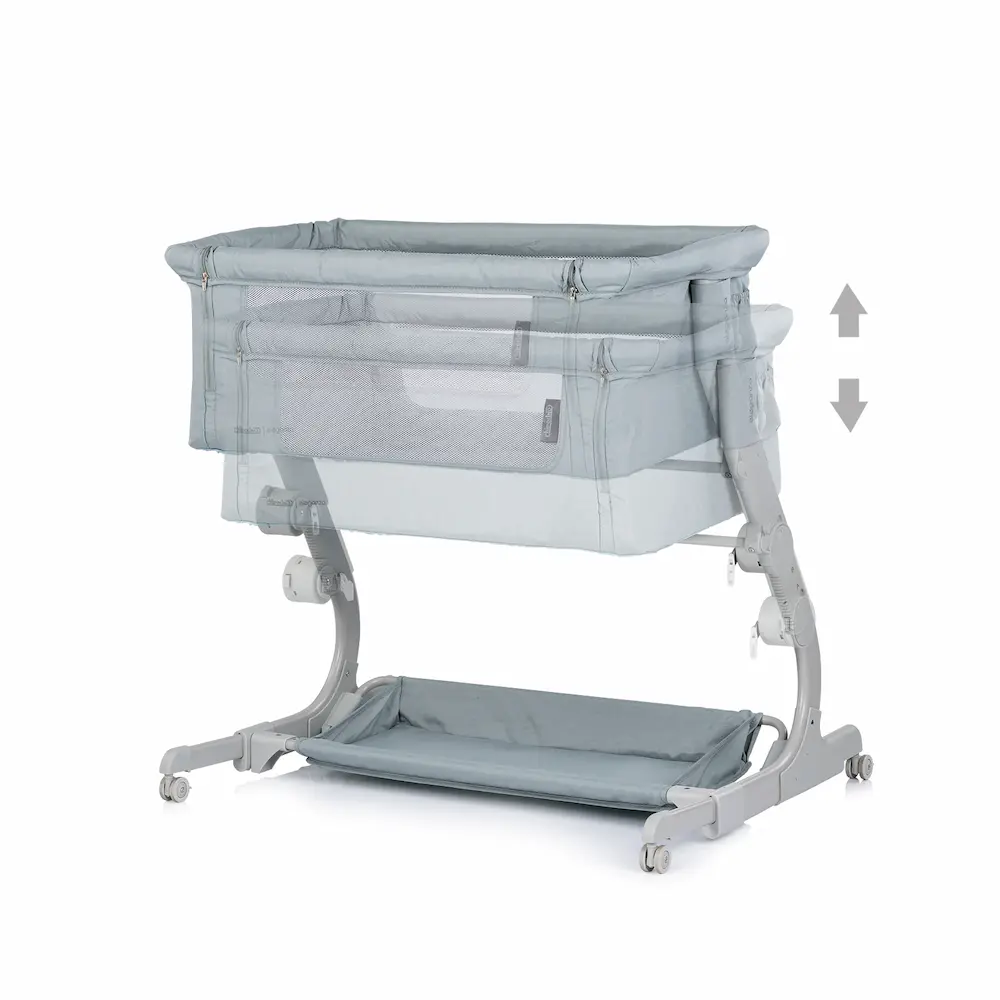 - Функция „Сън до мен“: Благодарение на падащата предна страна и включените колани за фиксиране, кошарата се превръща в естествено продължение на родителското легло. Така бебето е на една ръка разстояние за кърмене или прегръдка.