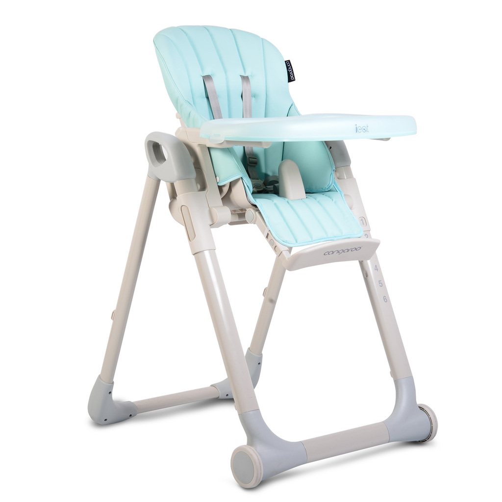 Детски стол за хранене I Eat син е подходящ за деца на възраст от 6 до 36 месеца и с тегло не повече от 15 кг.