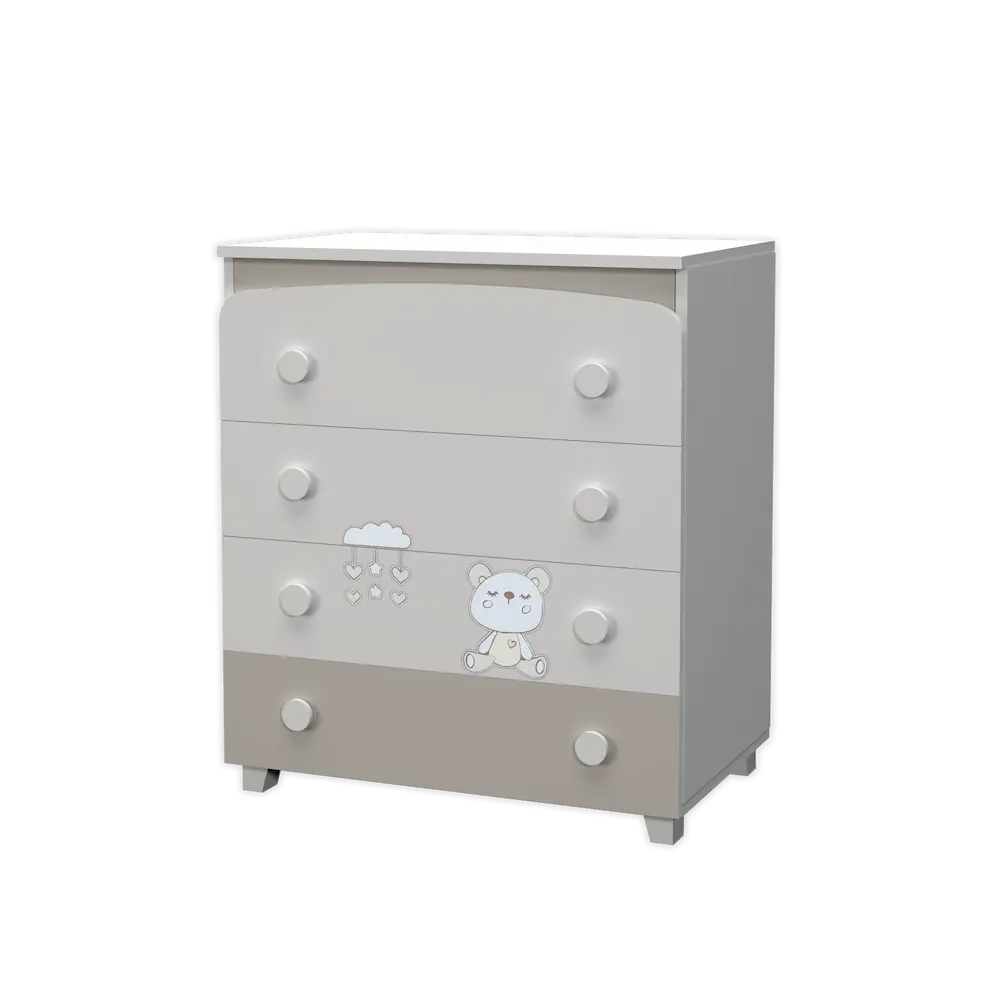 - Практичност без компромис: Четирите големи чекмеджета осигуряват пространството, необходимо за перфектната организация на бебешките принадлежности.