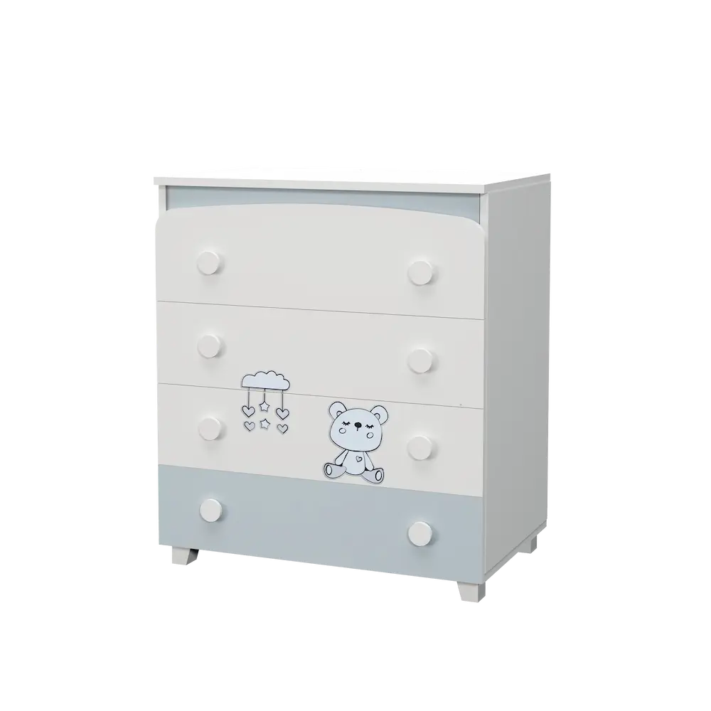 - Просторно съхранение: Четирите дълбоки чекмеджета предлагат отличен капацитет за организиране на дрешки и аксесоари.