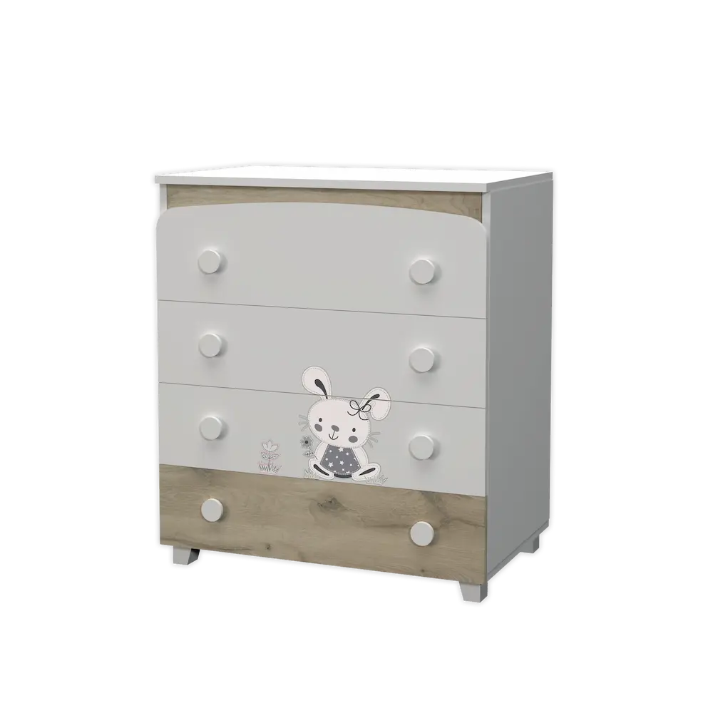 - Практично разпределение: Четирите обемни чекмеджета предлагат необходимото място за отлична организация на бебешките принадлежности.