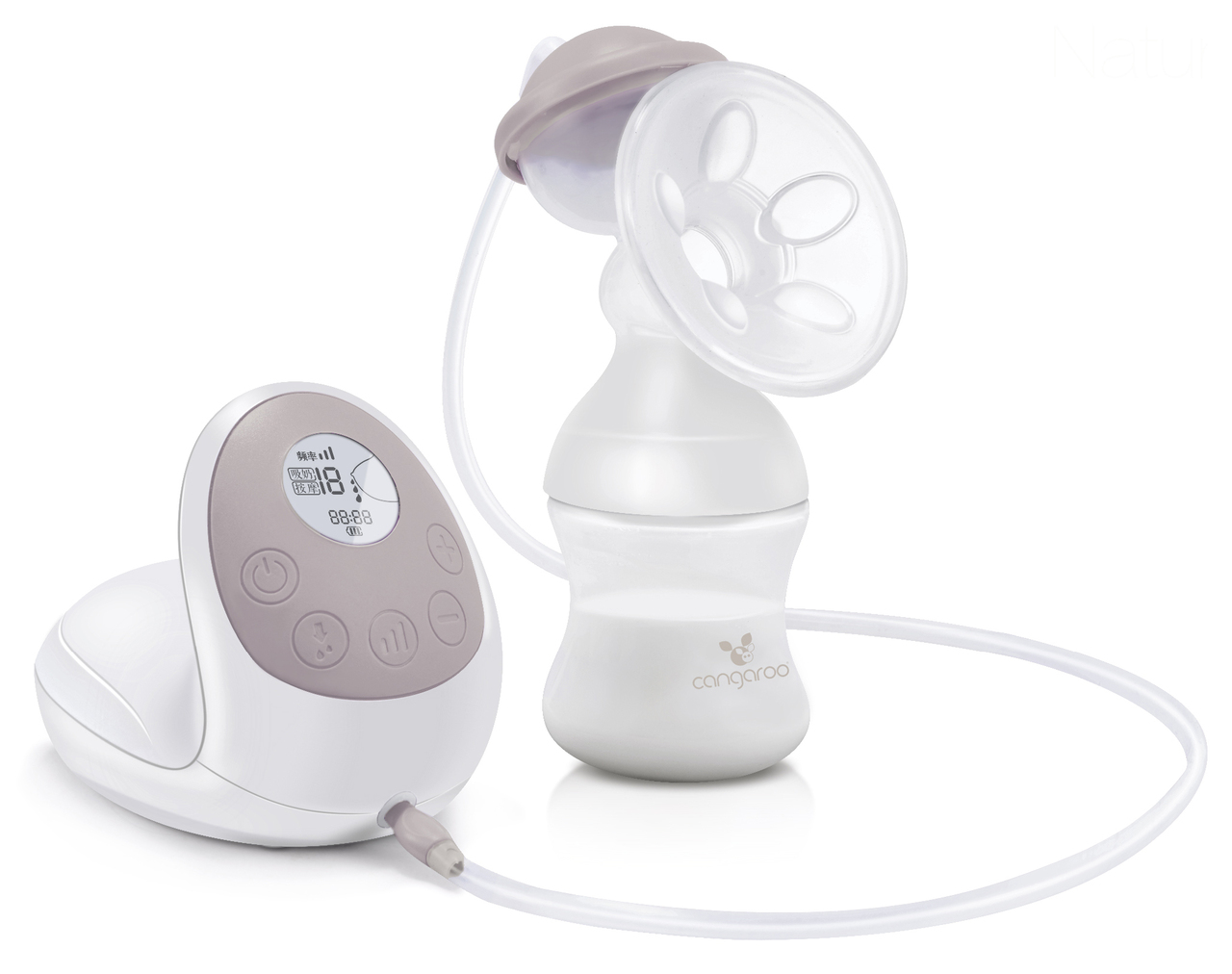Електрическата помпа за кърма на Cangaroo е с различни степени на контрол на силата на изпомпване, клапа за нежно изпомпване и мек масажиращ накрайник. Продуктът с 2 основни режима на работа: цикъл масаж или така наречената стимулация - 10 нива и 3 степени на честота.