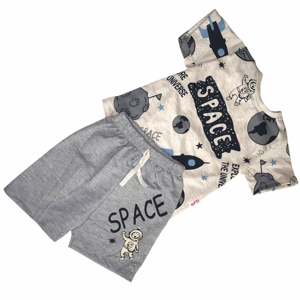 Бебешки комплект от 2 части за момче - долнище и блузка от интерлог с щампа.