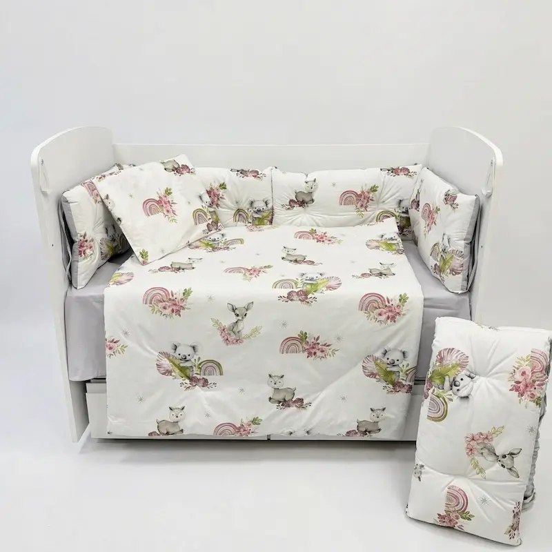 - Пълна персонализация: Изберете окомплектовка според вашите предпочитания – от базов комплект с чаршаф до пълен набор с обиколници и олекотена завивка.