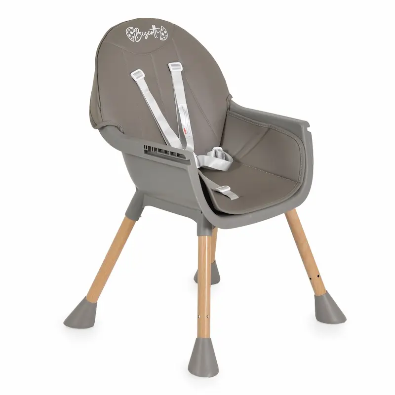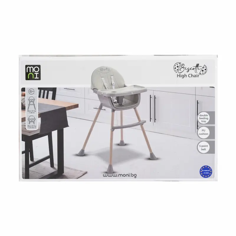 Moni Biscotti 2в1 е интелигентно решение за хранене и игра, което съчетава модерен бежов дизайн с крака в дървесен принт. Проектиран да расте заедно с вашето бебе, този модел се трансформира лесно, осигурявайки максимална безопасност и стил във всеки етап от развитието.